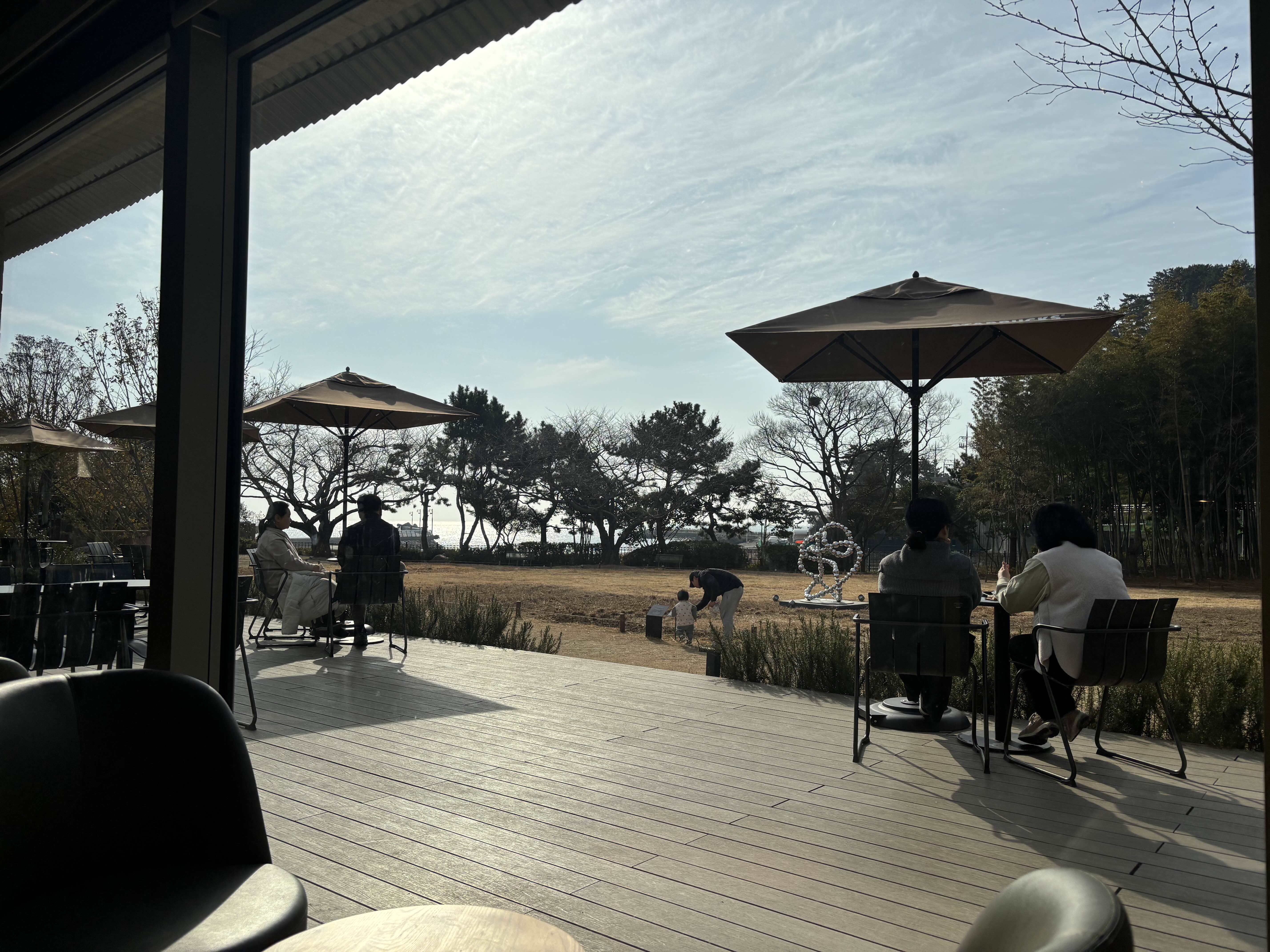 잔디밭도 넓어서 커피 마시면서 여유롭게 자연을 즐길 수 있어요. 기장 바다뷰를 보며 힐링하고 싶다면 이곳이 아주 딱이에요!